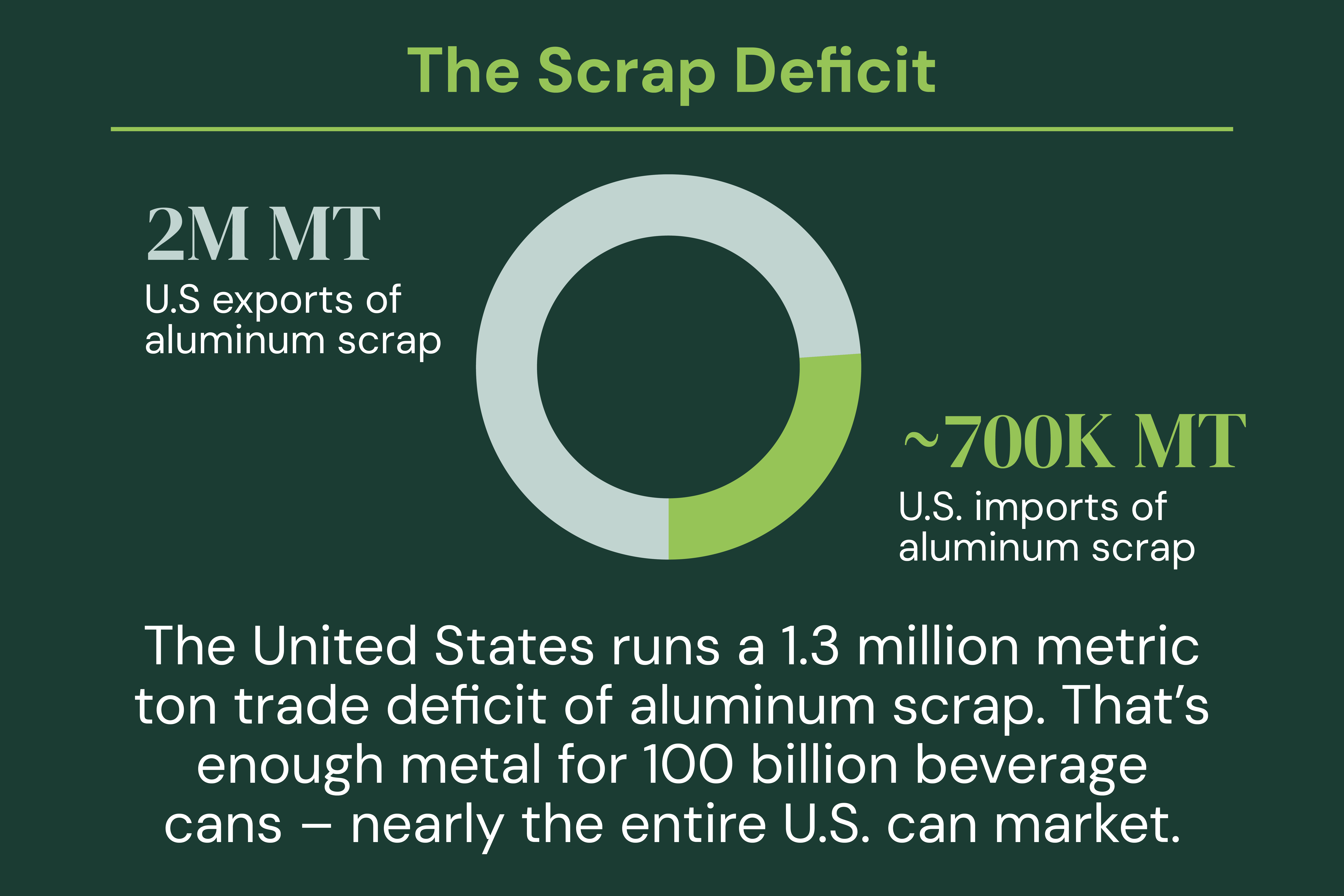 - The U.S. exports ~2 million metric tons (MT) of aluminum scrap each year—more than a quarter of total scrap supply.